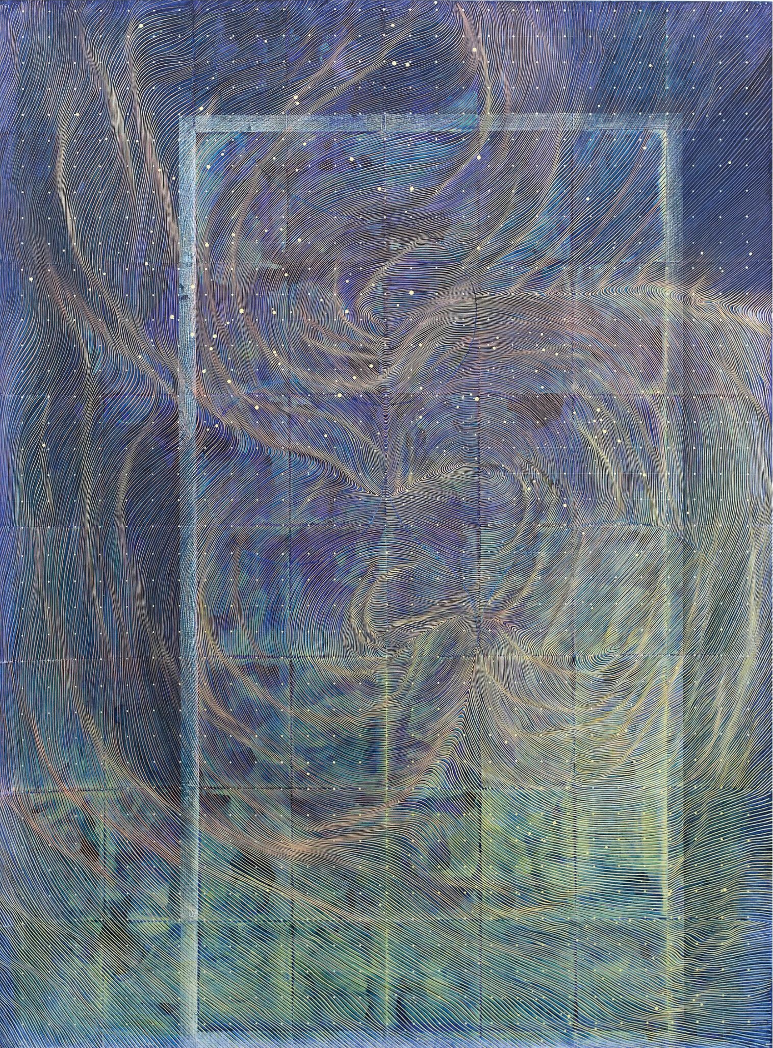 [Image: linn meyers, The Moon is a Thief, 2005. Acrylic ink and acrylic gouache on linen, 83 x 62 in. Courtesy the artist.]