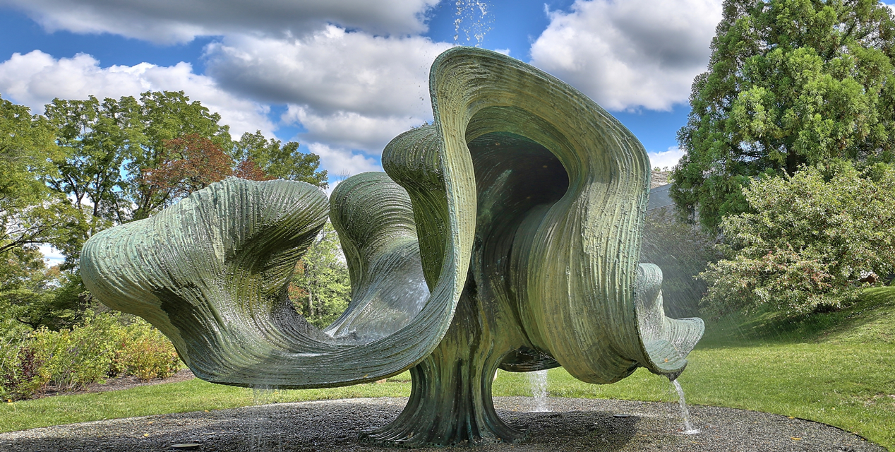 Harry Bertoia was born in Italy in 1915, and he immigrated to the United States at the age of fifteen. Invited by Hans and Florence Knoll, he moved to Bally, Pennsylvania in 1950. He was successful in his work for Knoll, Inc., and he pursued a career that bridged the fine arts and industrial design. Starting in the summer of 1966, he built the “Free Interpretation of Plant Forms” with two studio assistants in the parking area outside his Bally studio because it was too large to build inside.