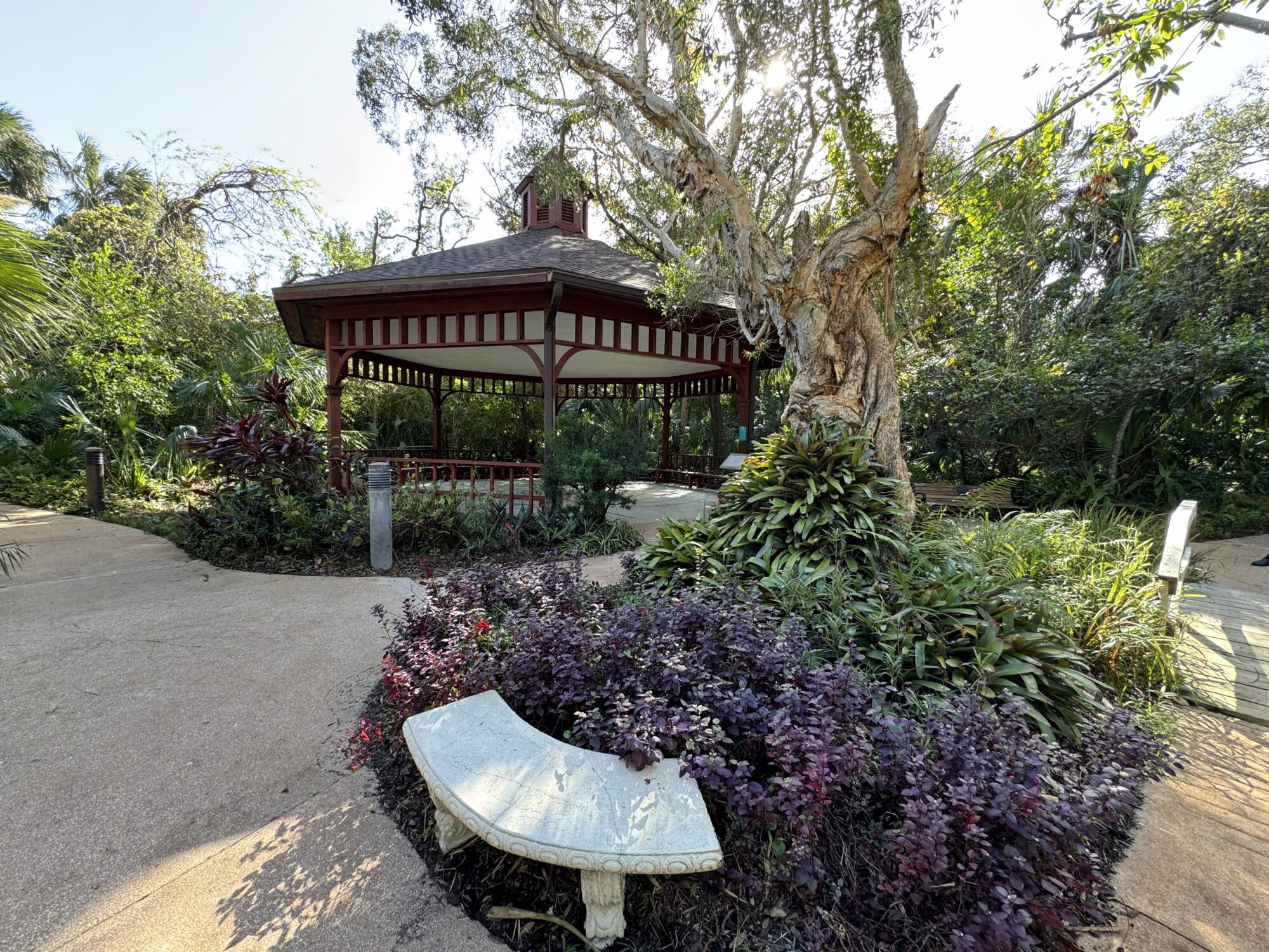 Every trip to the museum should include a stroll through the lush gardens, which are home to a picturesque waterfall feature, a Free Little Art Gallery, a historic cottage, a small turtle sanctuary, butterfly observations zones, and a charming gazebo with a painted floor labyrinth for walking meditations. Other opportunities for reflection in the garden include two original sculptures honoring veterans of the Korean & Vietnam Wars. Other military tributes include a plaque listing three local residents who gave their lives in World War I, which is mounted on the wall near the American flag pole inside the Granada Pavilion Courtyard, and the bronze plaque listing all Ormond residents who served in World War II, which is housed inside the Museum.